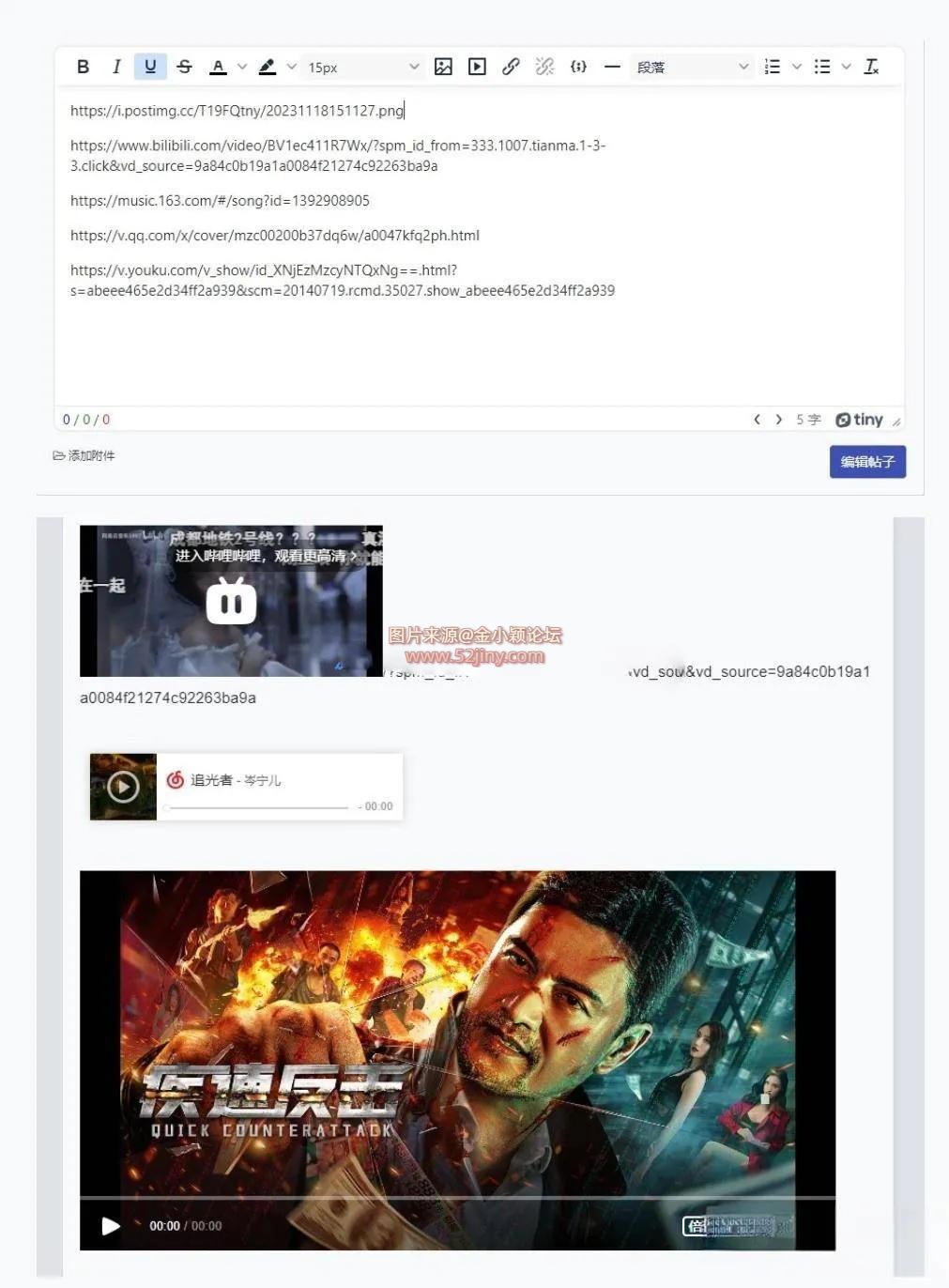 [Xiuno插件] xiuno论坛 – 直链转换视频、音乐、图片插件 |